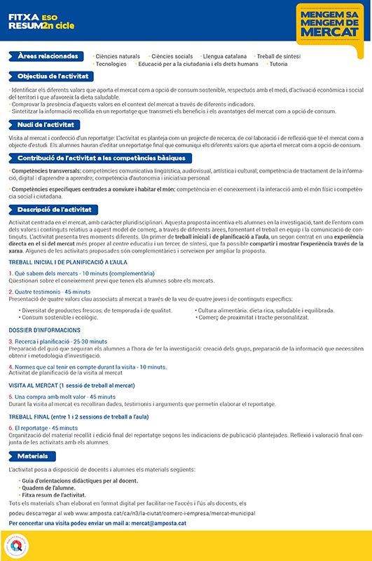 I, tot i que els materials estan dissenyats per al professorat i l’alumnat, qualsevol persona pot descarregar-los en format PDF i descobrir tot el que s’amaga darrere el món del Mercat!