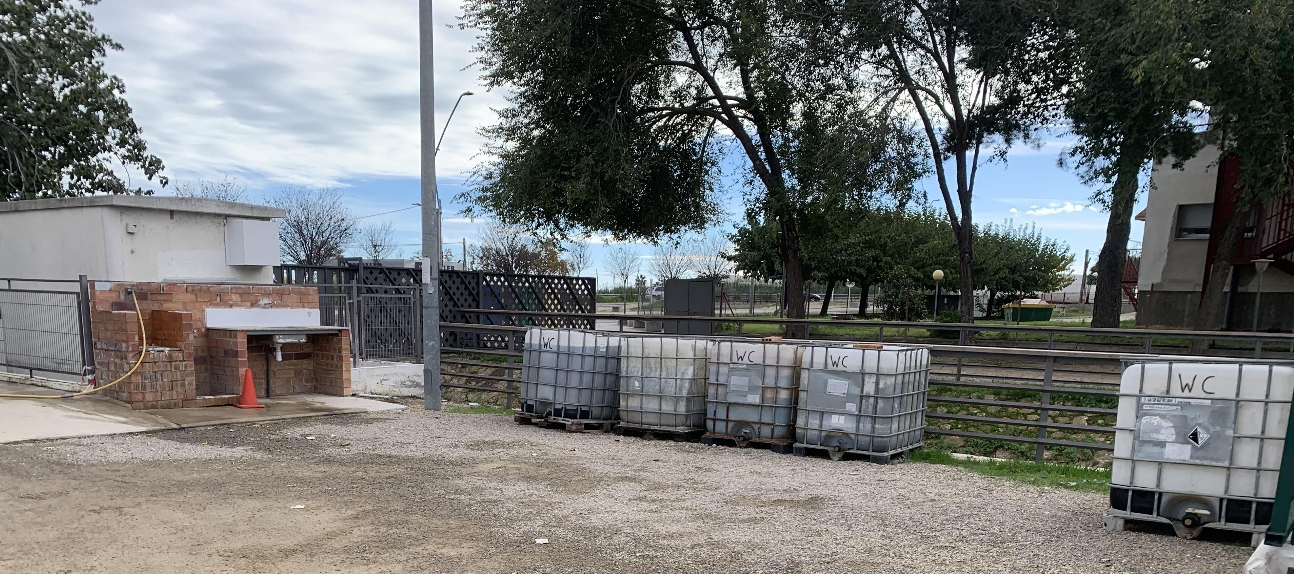 D’altra banda, l’espai i les seves instal·lacions no estan degudament legalitzats. Així mateix, l’àrea pateix importants mancances pel que fa al funcionament i al manteniment de les seves instal·lacions. A tall d’exemple, la cisterna d’aigües brutes està fora de servei, i en lloc de reparar-la amb la major agilitat possible, s’han col·locat uns dipòsits de plàstic transparent que s’utilitzen com a punt d’abocament d’aigües fecals, una solució completament inadequada i fora de normativa. A més, la pica per fregar els plats està situada just al costat de la cisterna i els dipòsits d’aigües fecals. Aquesta situació genera males olors, problemes d’insalubritat i un risc evident per a la salut pública i per al medi ambient. Amb tot, l’estat actual de la instal·lació projecta una imatge deplorable als autocaravanistes que venen a visitar la nostra ciutat, molts dels quals deixen ressenyes molt negatives a internet sobre la nostra ciutat.